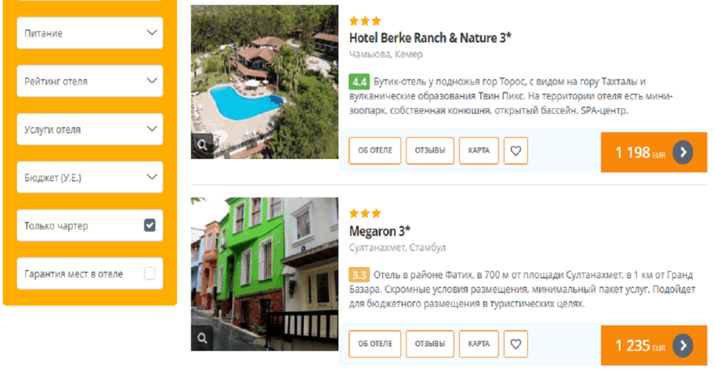 Так, тур в Турцию на двоих с перелетом чартерным рейсом и размещением в трехзвездочном отеле на 6 ночей без питания обойдется в октябре от 1198 евро по курсу Нацбанка, а за отдых в Шарм-эль-Шейхе на двоих за неделю придется выложить не менее 2100 долларов с учетом питания. Примерно во столько же обойдется неделя пребывания на курорте Шарджа в ОАЭ в двух-трехзвездочном отеле (завтраки включены).