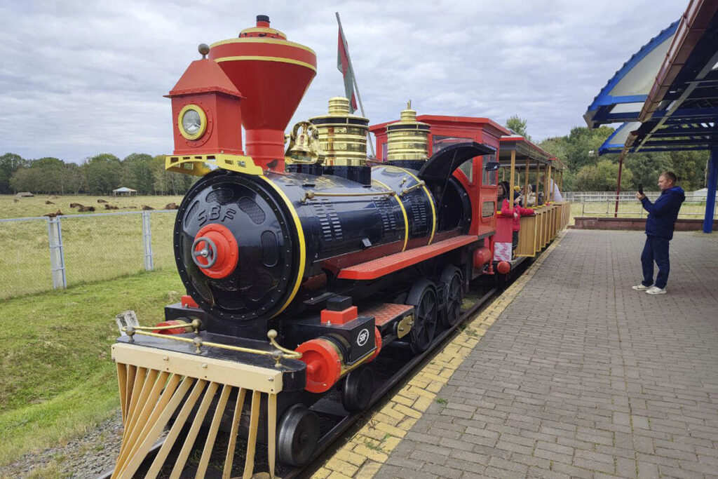 В зоосаде есть необычный для таких мест аттракцион – «Сафари по железной дороге». За 10 минут поезд, рассчитанный на 36 взрослых мест, провозит пассажиров по местам концентрации беловежских зубров (42 особи!) и пятнистых оленей. Если повезет, увидеть их можно очень близко. Порой зубры расположены к посетителям и тусуются рядом с перроном. Так что даже не катающиеся на поезде могут с близкого расстояние рассмотреть величественное стадо.