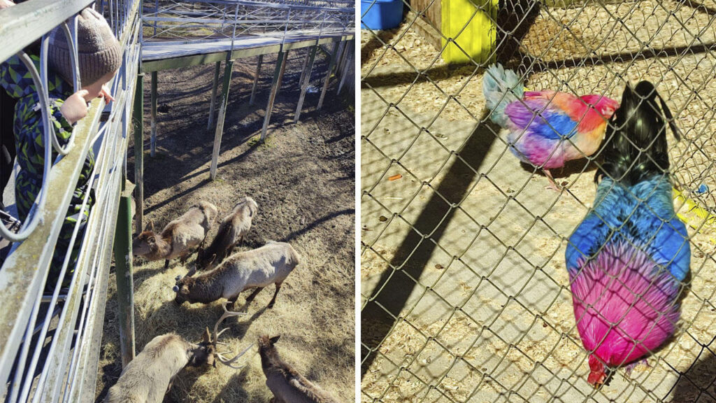Если хотите посмотреть аквариумных рыбок, приготовьтесь заплатить еще 2 рубля. За эту же сумму можно взять в качестве угощения для обитателей вафельный стаканчик с порезанной соломкой морковкой и белым хлебом. Редкий посетитель откажется от возможности покормить коз и овечек: очень многие проходят за ворота, держа в руке стаканчик.