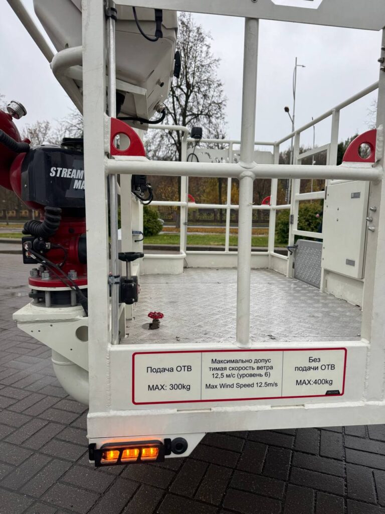 Основные технические характеристики: максимальная рабочая высота подъема – не менее 55 м, что соответствует 15 этажам. Максимальная нагрузка на люльку – 400 кг.